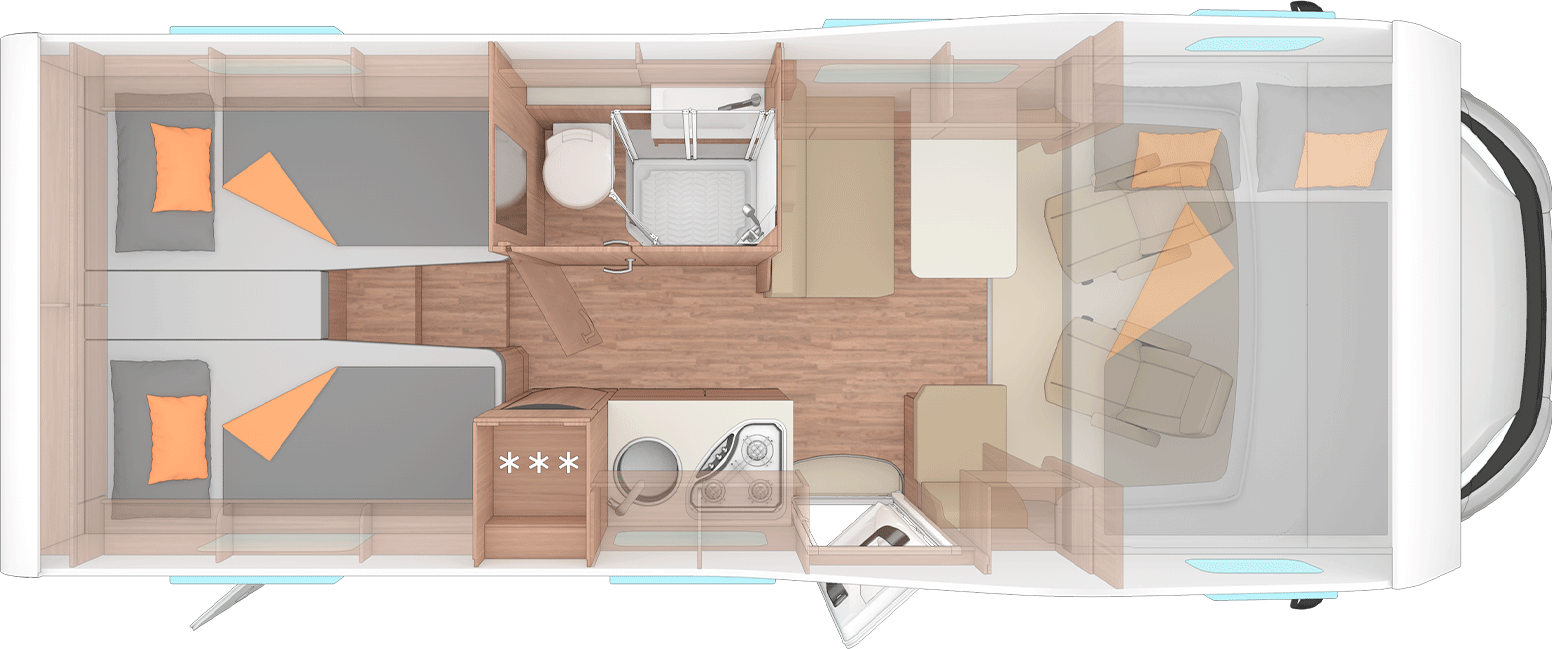 - Frisch- und Abwassertanks vom Fahrzeuginneren zugänglich