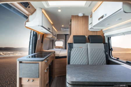 Kochen - Stilvoll kochen für unterwegs. Im CaraBus zu kochen macht überraschend viel Spaß. Das stimmige Möbeldesign mit abgerundeten Kanten und weicher Linienführung fügt sich perfekt ins Raumkonzept ein.